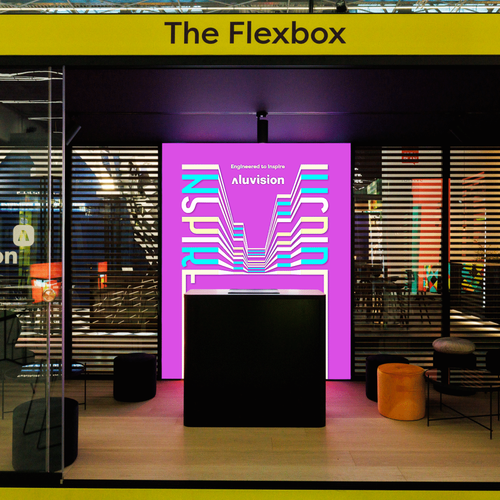 A mobile showroom, remarkable display window, luxurious VIP lounge,… The Flexbox applications are endless. The units can feature a variety of Aluvision walls, lighting, desks or other furniture. The result? A unique space that brings a new dimension to your outdoor event!